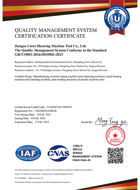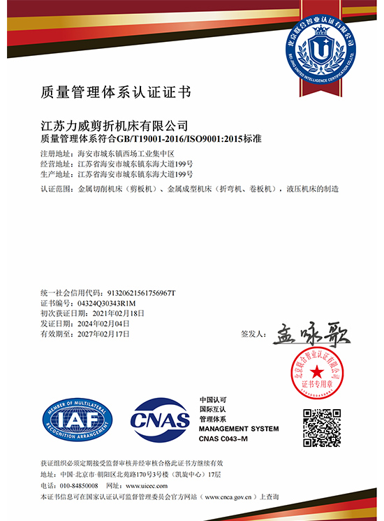 质量管理体系认证证书