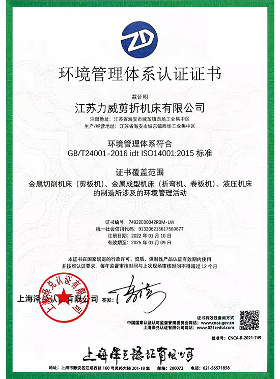 环境管理体系认证证书